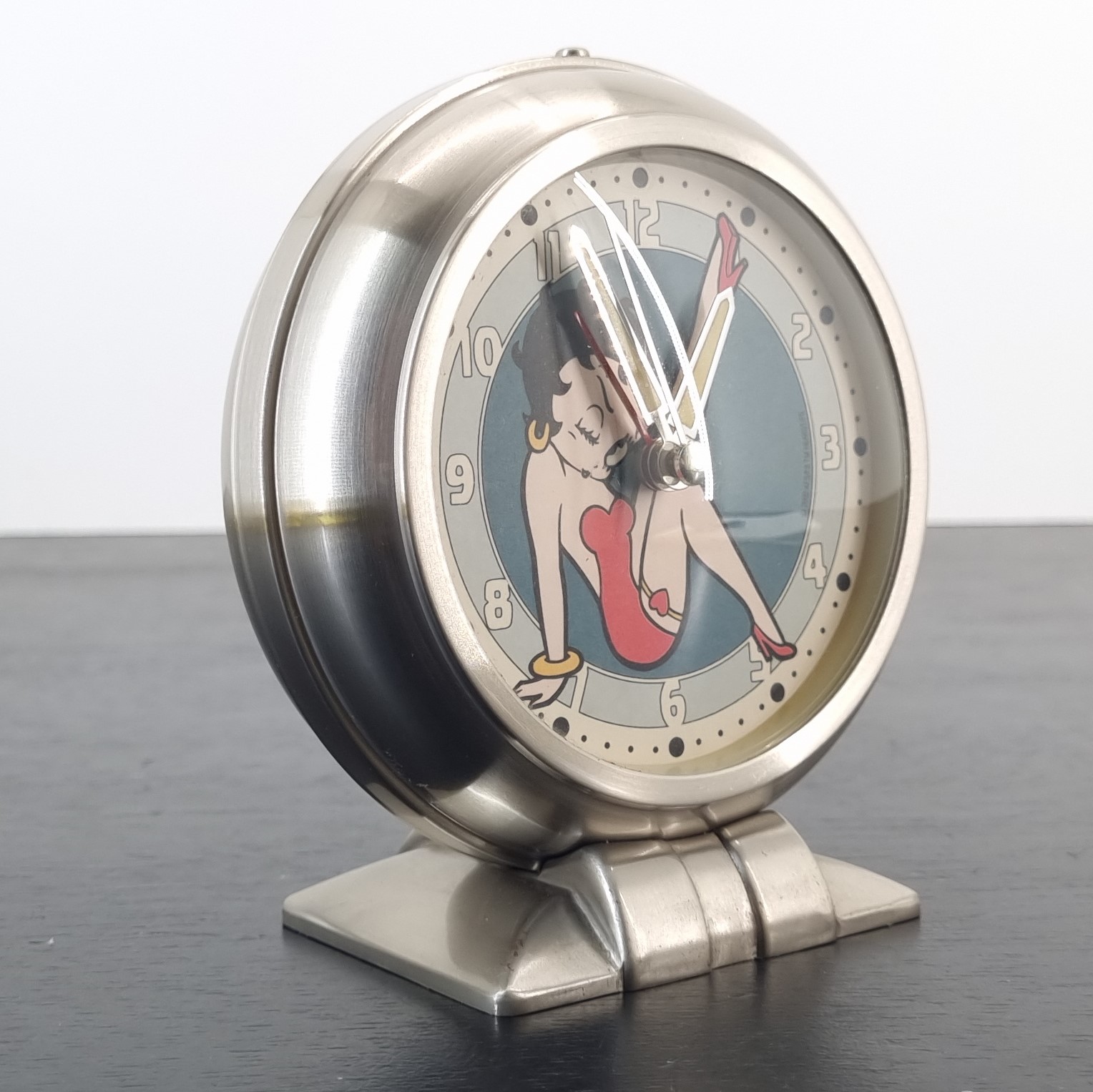 Amazing, vintage alarm clock of your favorite King Features character Betty Boop. Betty Boop has her leg up, a typical Betty Boop pose. A amazing Betty Boop alarm clock for you.