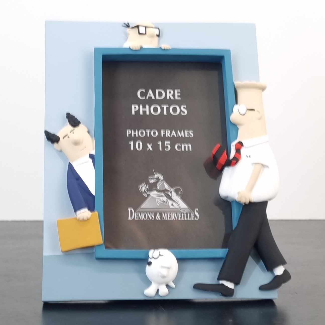 Demons et Merveilles has produced this vintage Dilbert photo frame in the 1990’s. This pre-loved photo frame is about 20 centimeters high and comes with the original box. Your photo can be about 15 cm high by 10 cm wide. The condition of this photo frame is excellent. Demons et Merveilles produced this collectible photo frame in high quality Resin and in license of United Feature Syndicate.