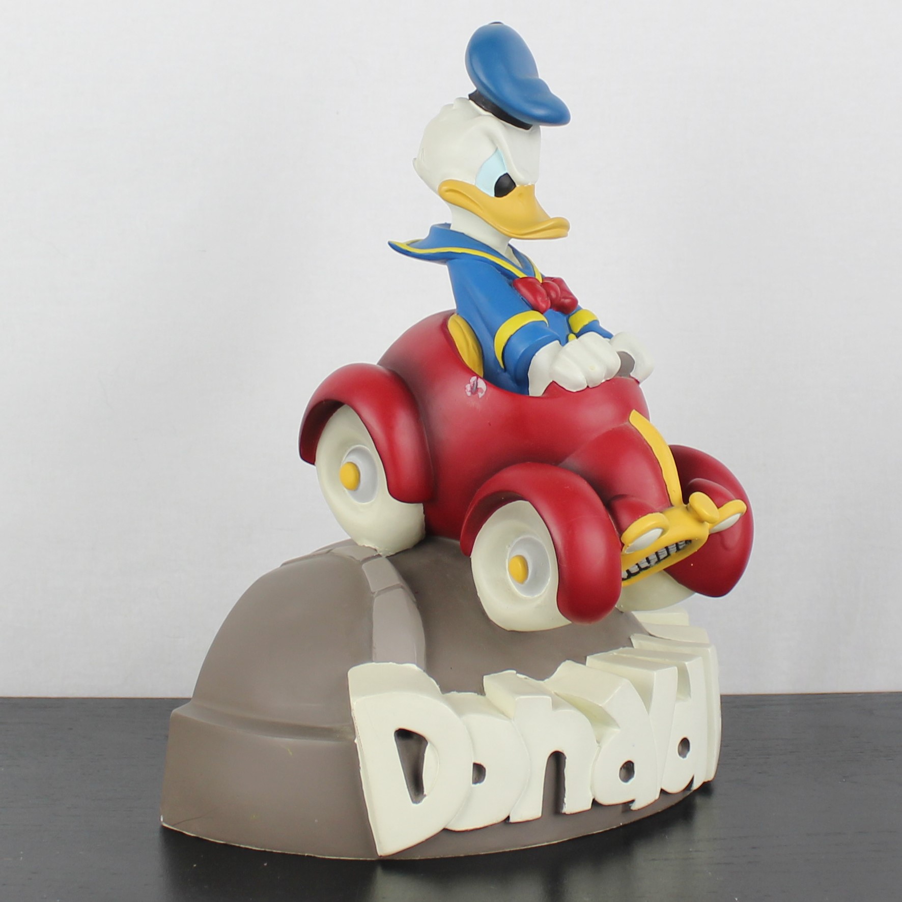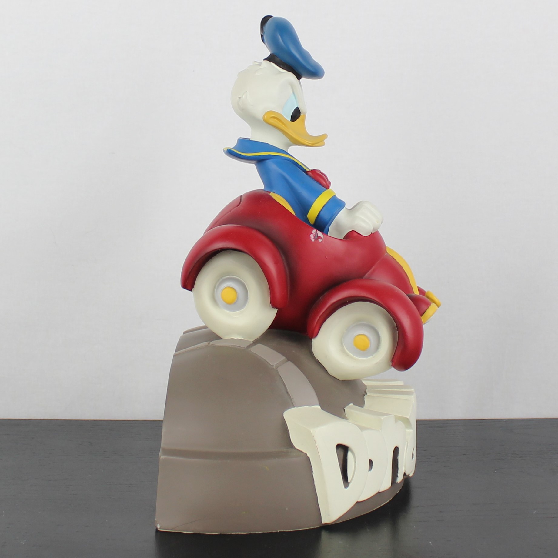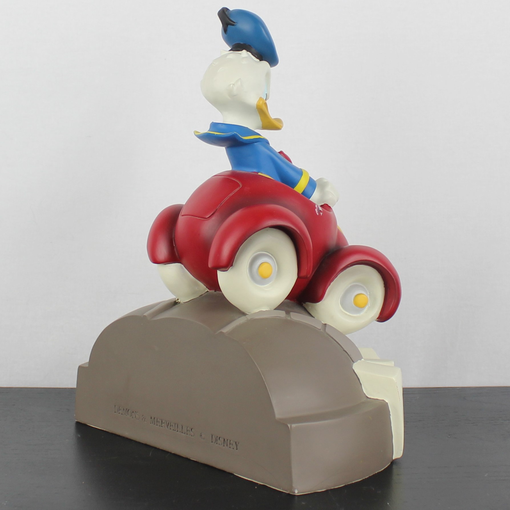 Magnificent, vintage statue of your favorite Walt Disney character; Donald Duck. Donald Duck is racing in his car.
