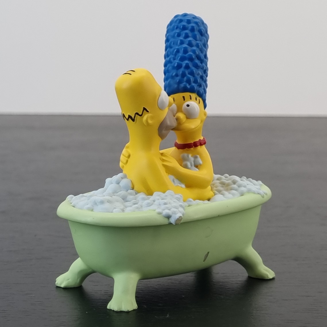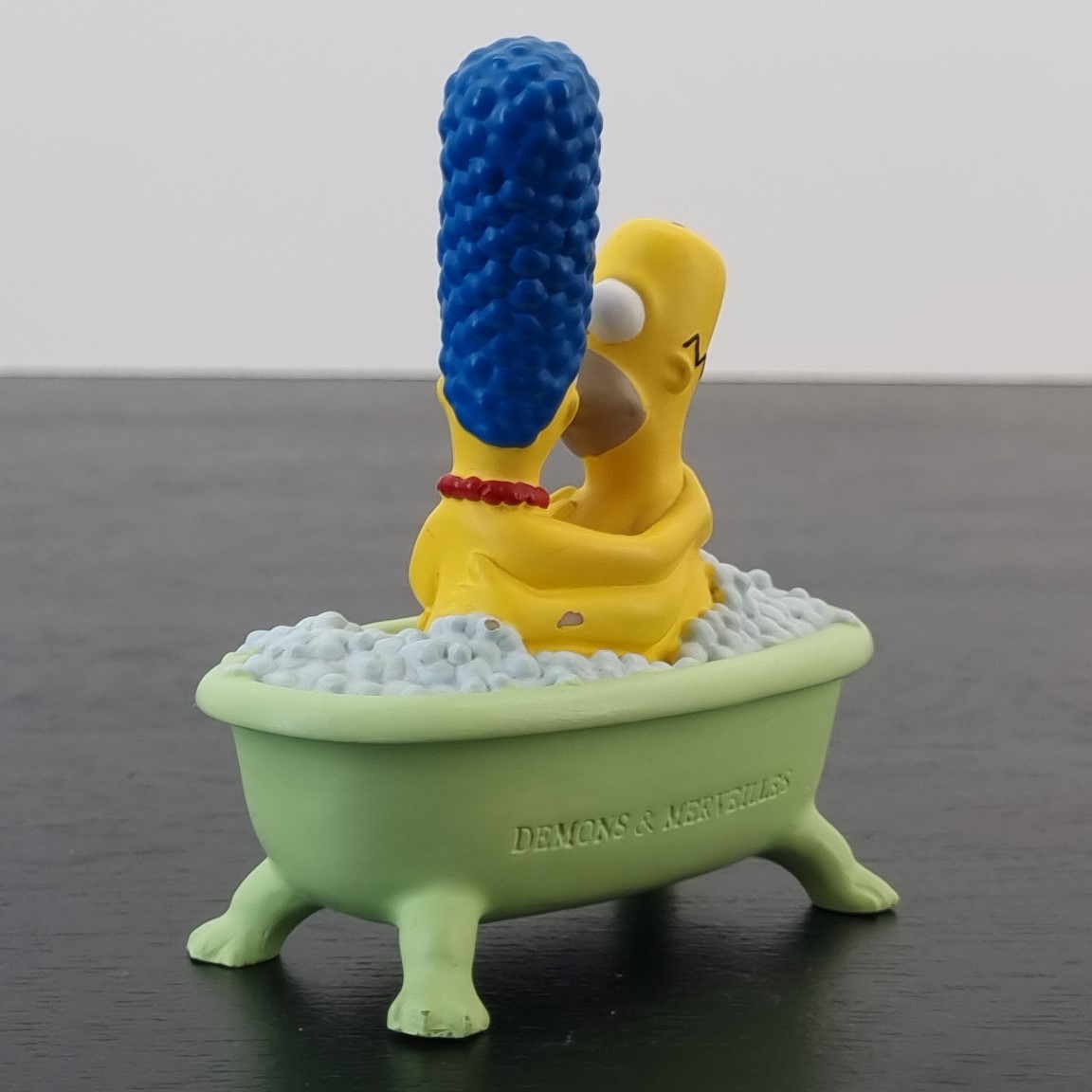 Magnificent, vintage figurine of your favorite The Simpsons characters; Marge Simpson and Homer Simpson. This polyresin figurine shows Homer and Marge Simpson taking a bath together. Based on a classic Simpsons cartoon scene.