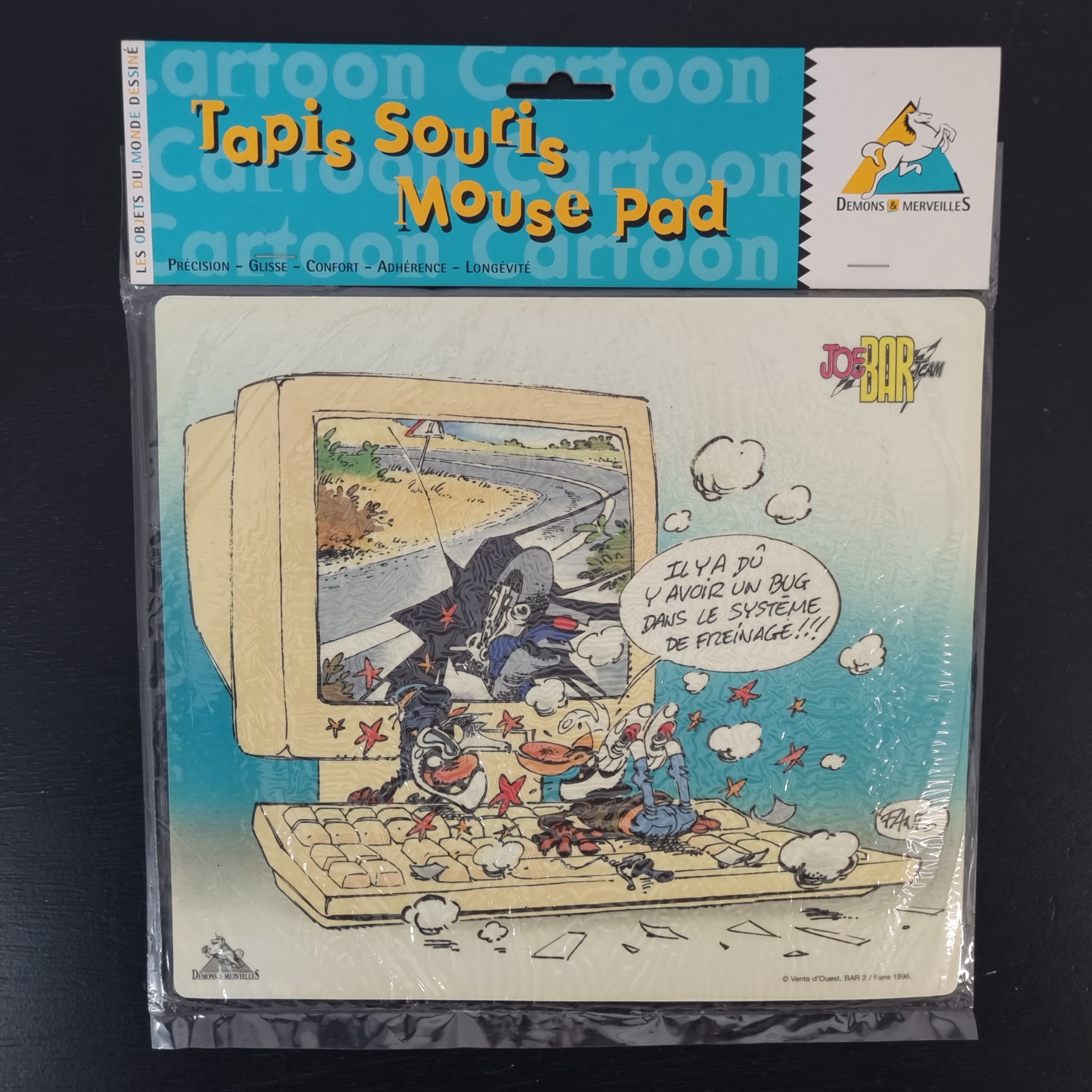 Demons et Merveilles has produced this vintage Joe Bar mouse pad in the year 1996. This pre-loved Joe collectible is about 22 centimeters high. The condition of this Joe Bar mouse pad is excellent. Demons et Merveilles produced this collectible mouse pad in license of Glénat.
