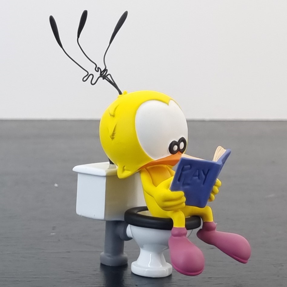 Magnificent, vintage figurine of your favorite Dan Salel character; Le Piaf. Le Piaf is reading a exciting book on the toilet, because well… Why not?