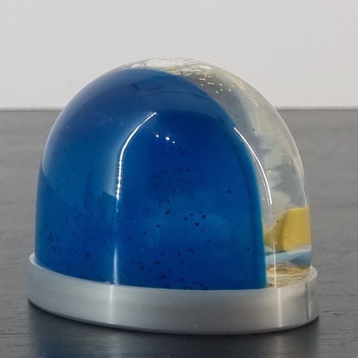 Demons et Merveilles has produced this vintage Sitting Ducks snowglobe in the year 2004. This pre-loved collectible snowglobeis about 6 centimeters high and comes with the original box. The condition of this Sitting Ducks snowglobe is excellent. Demons et Merveilles produced this collectible in high quality PVC and in license of Sitting Duck Productions.