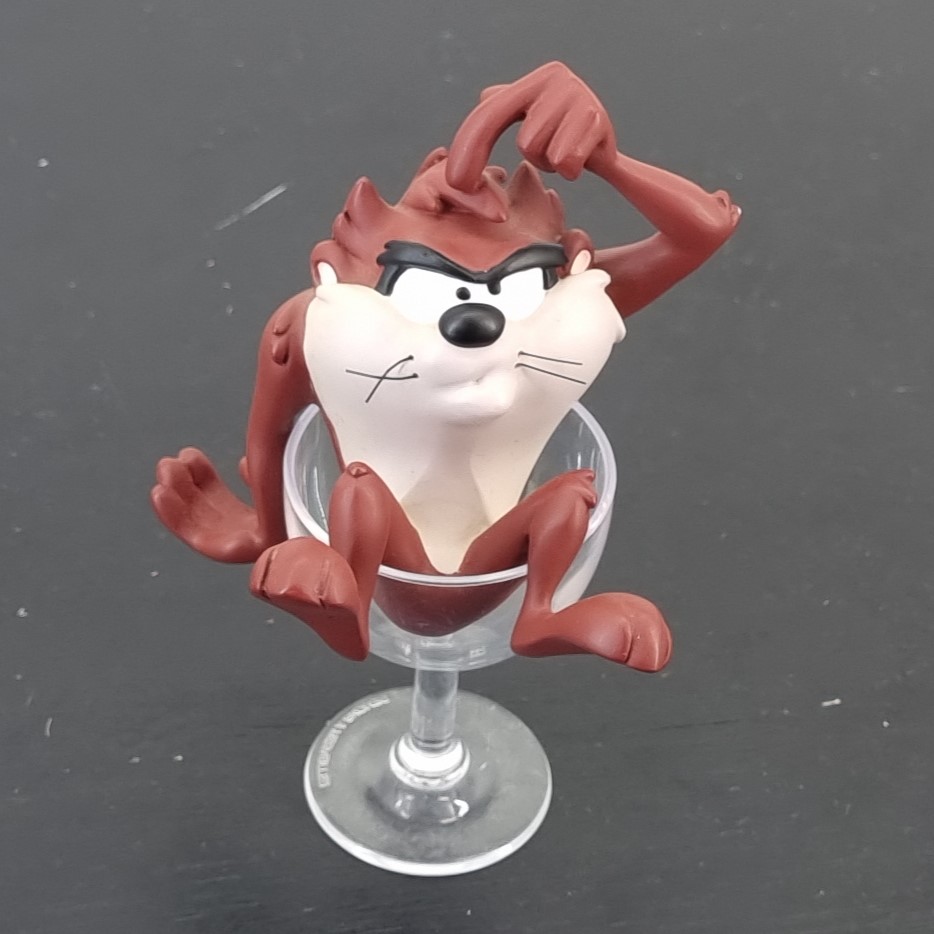 Magnificent, vintage figurine of your favorite Looney Tunes character; Tasmanian Devil. Tasmanian Devil is relaxing in a glass.