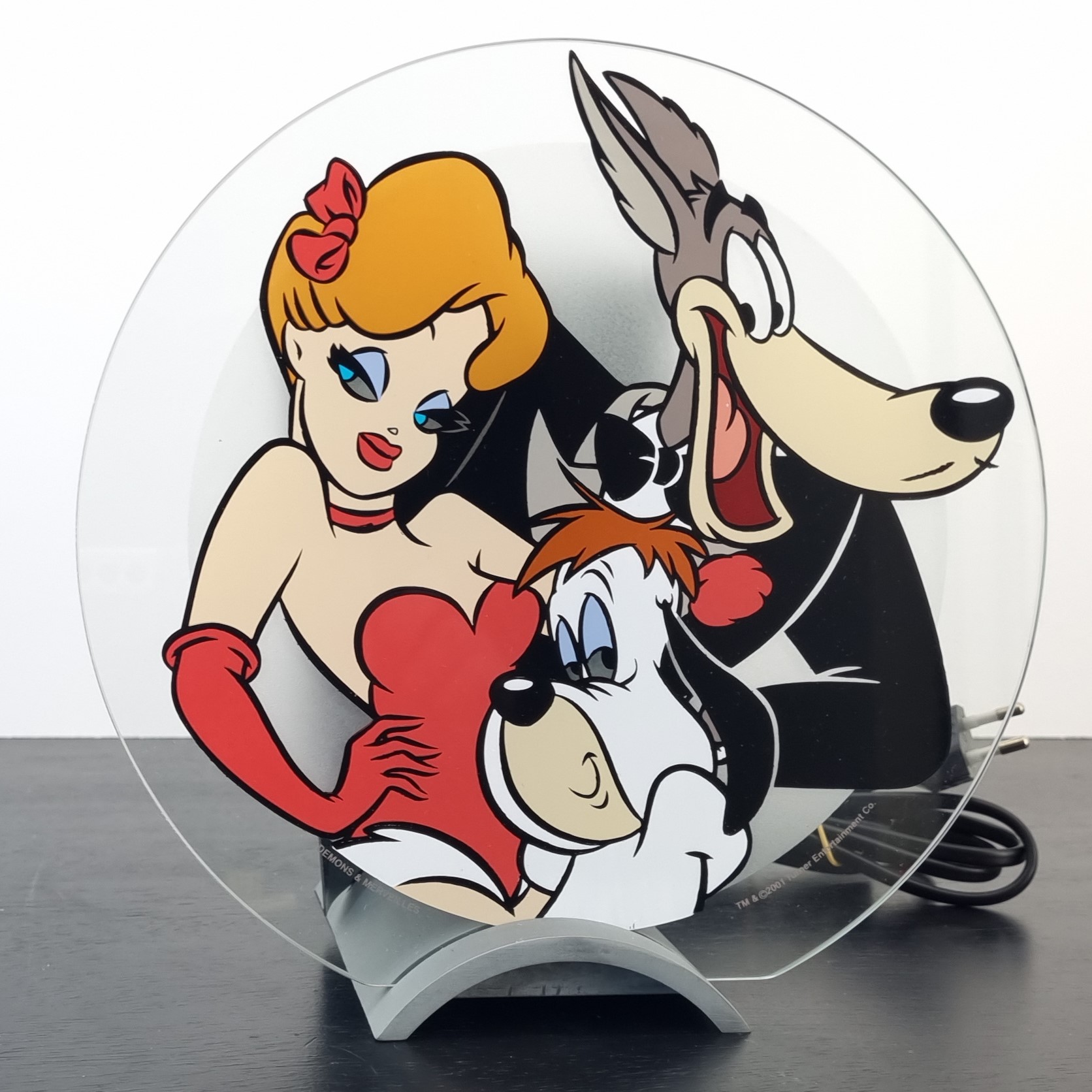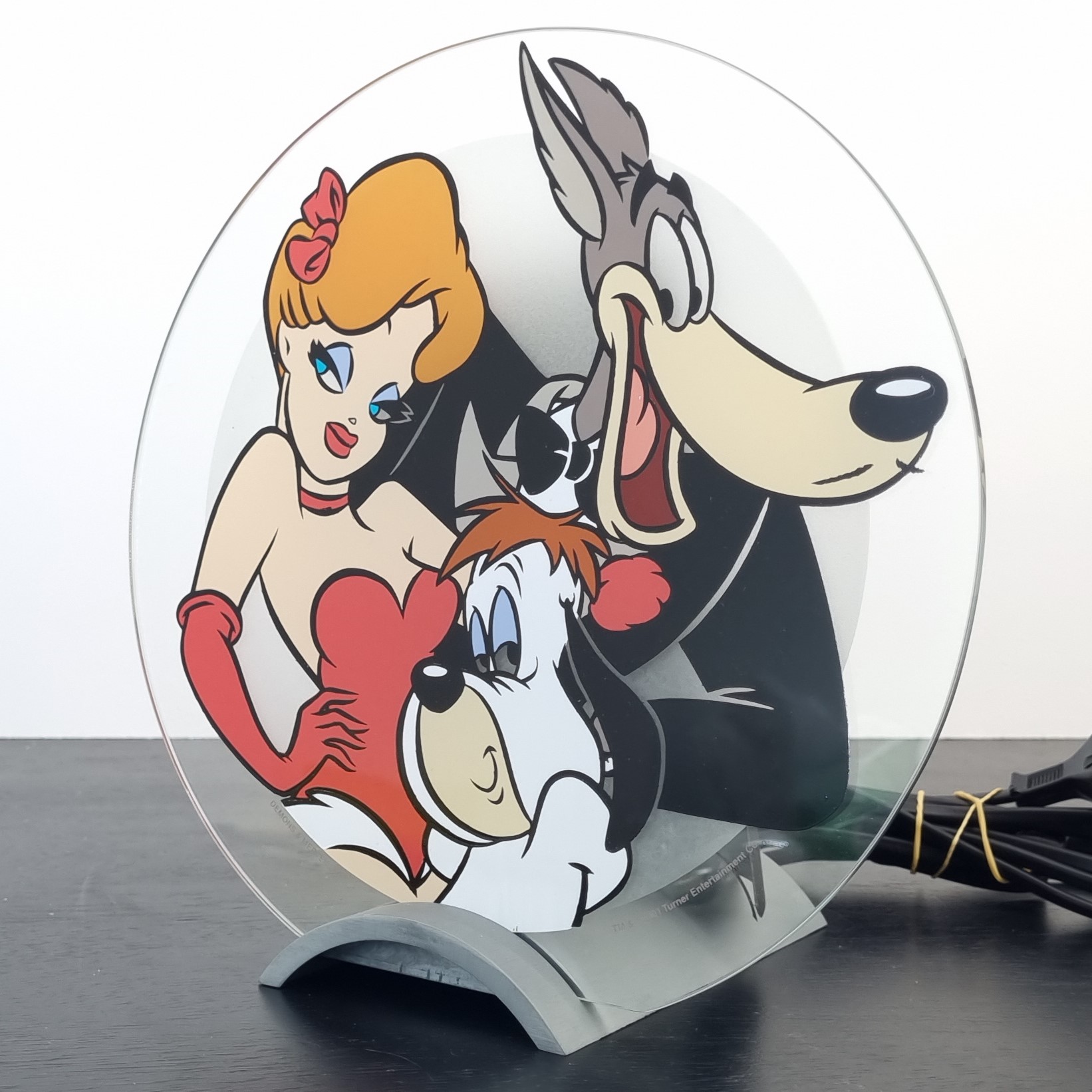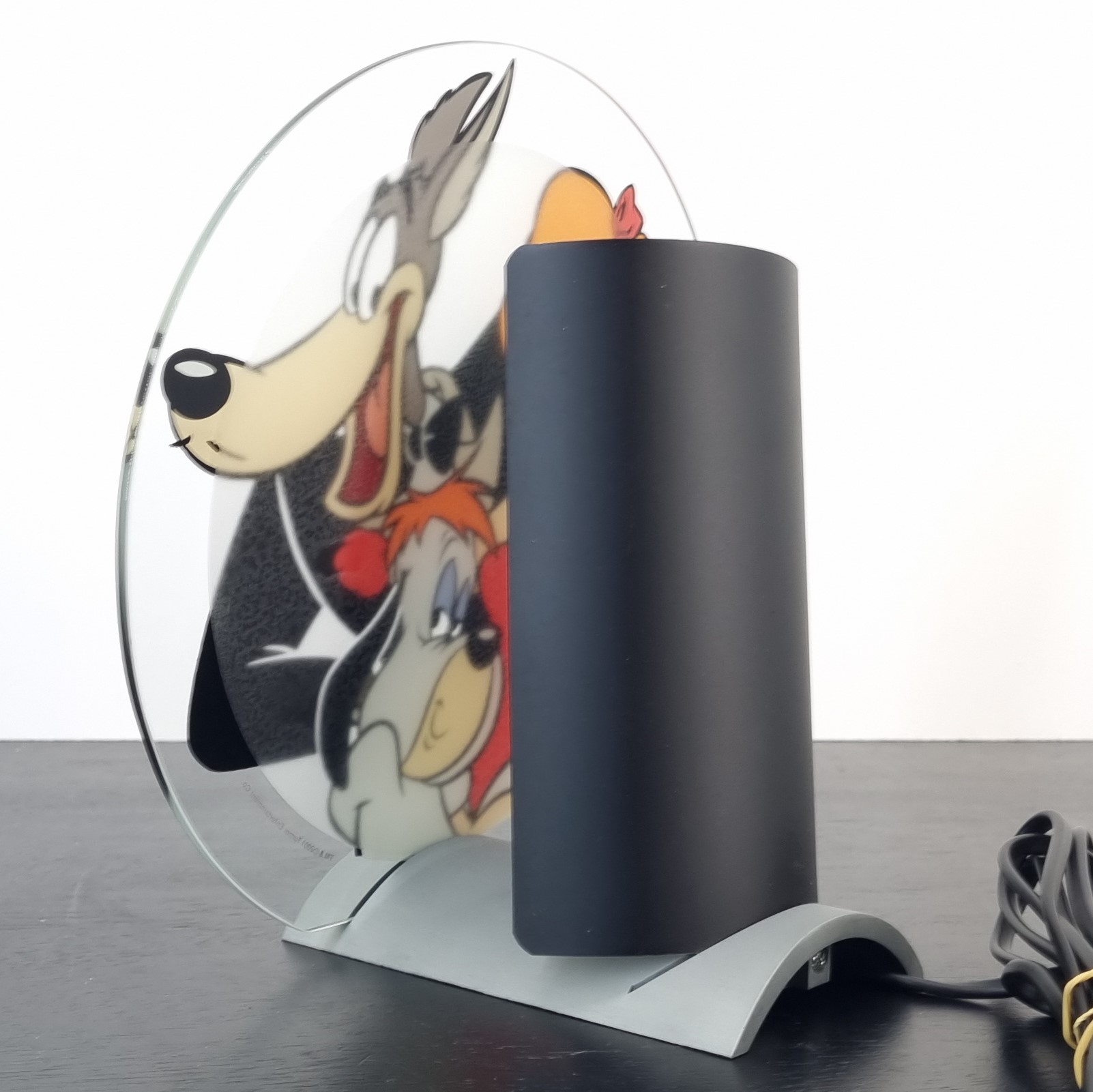 Demons et Merveilles has produced this vintage Tex Avery lamp in the 1990’s. This pre-loved Droopy, Red and Wolf lamp is about 24 centimeters high and comes with the original box. The condition of this Tex Avery table lamp is excellent. Demons et Merveilles produced this collectible lamp in high quality Metal and Glass in license of Turner Entertainment.
