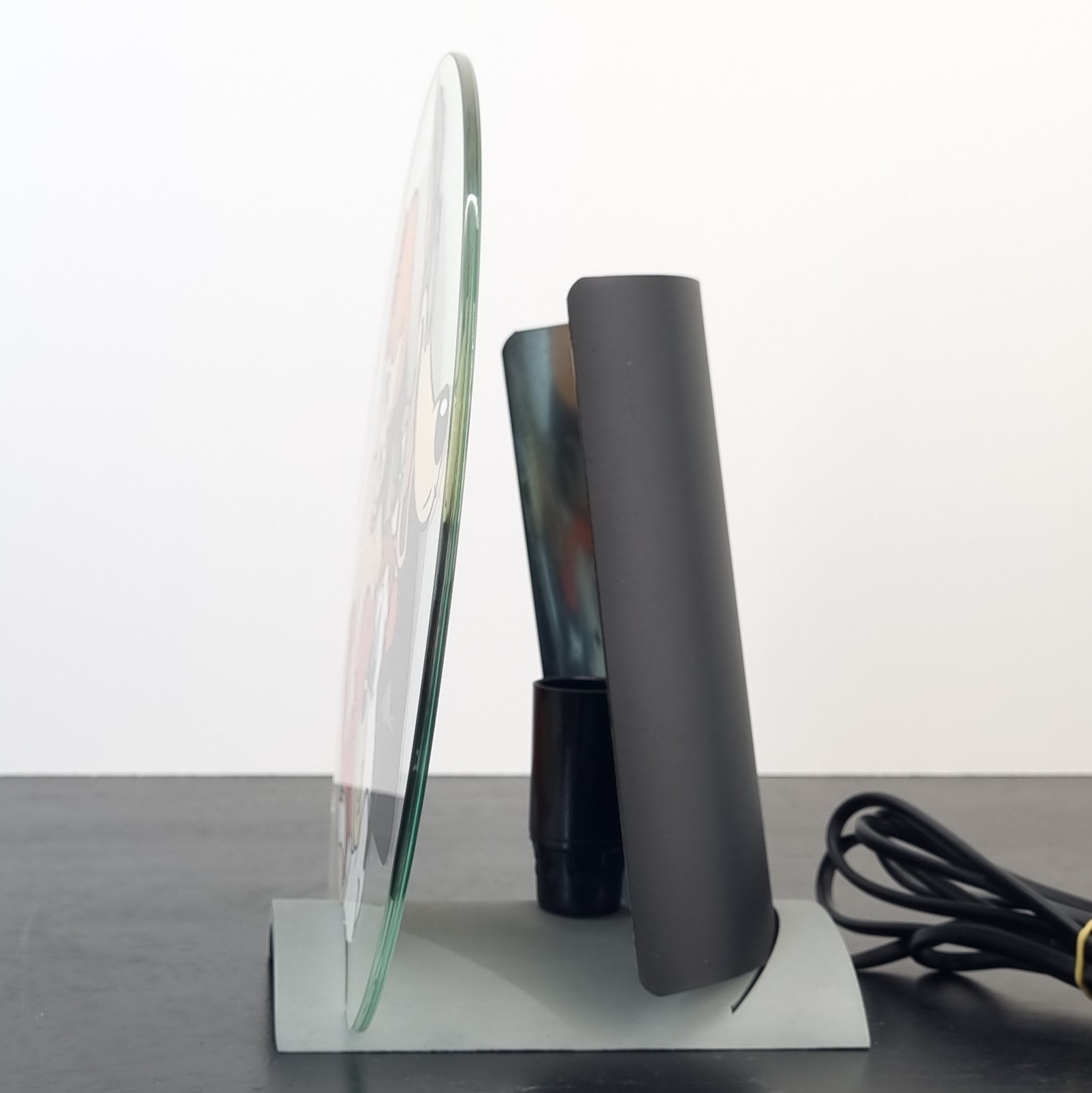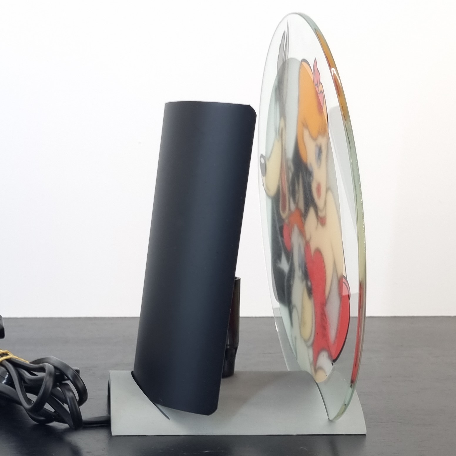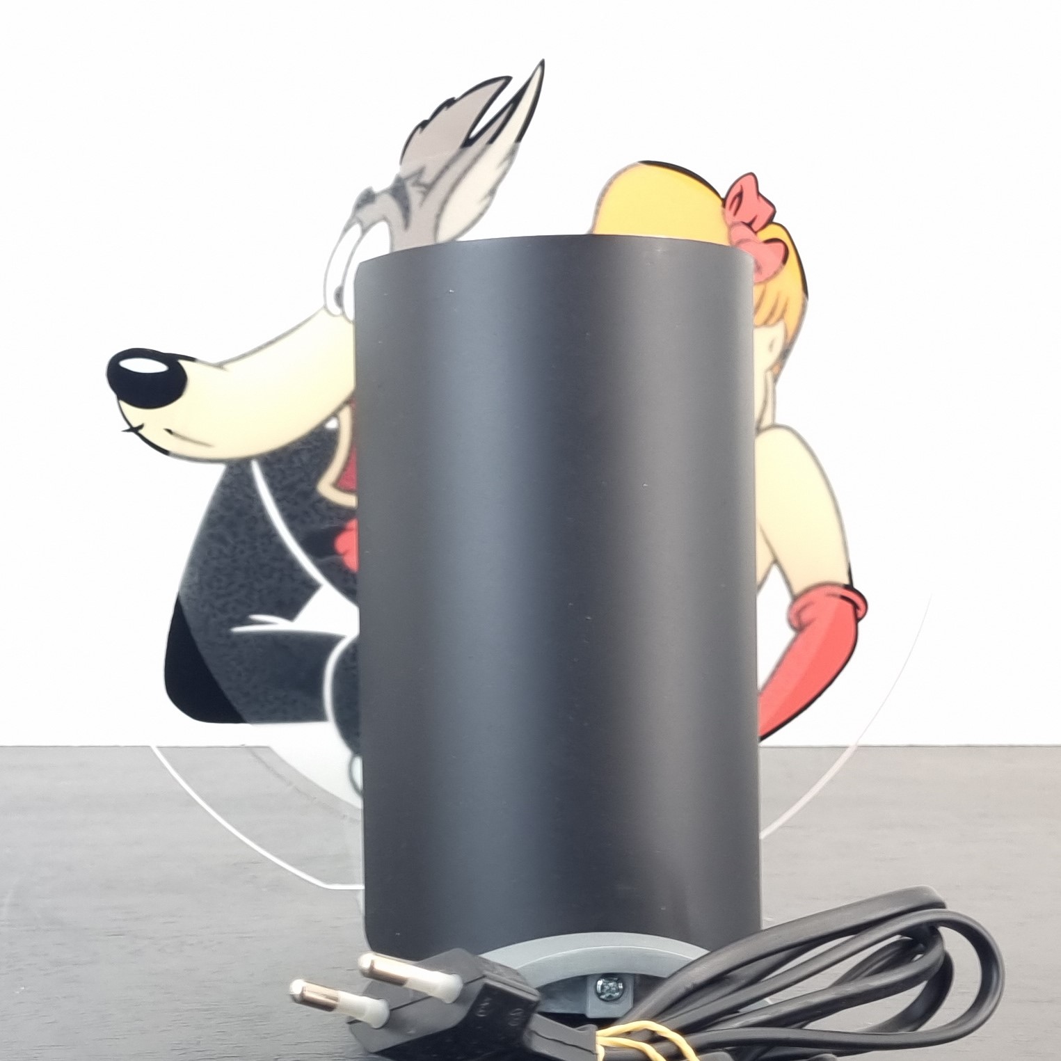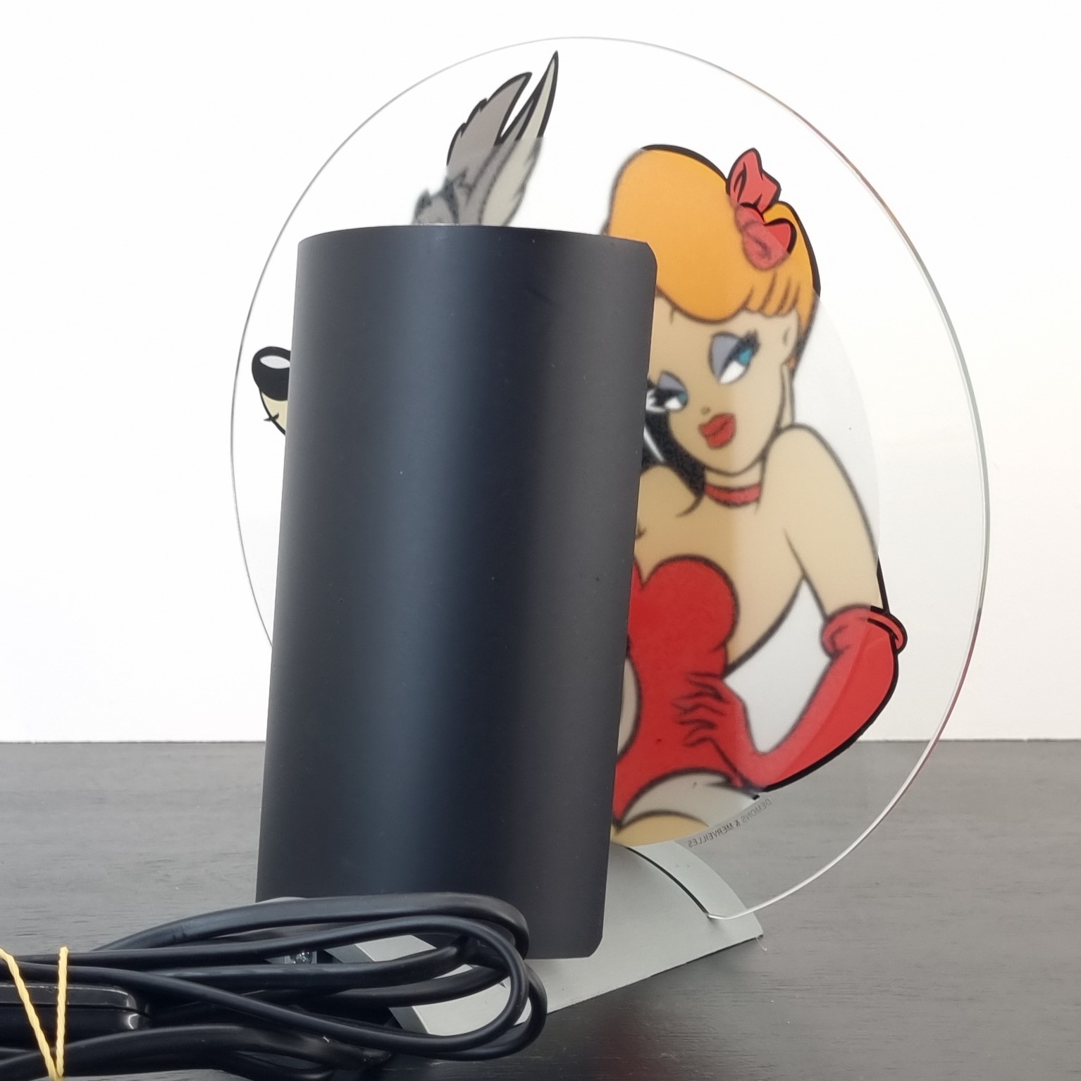 Demons et Merveilles has produced this vintage Tex Avery lamp in the 1990’s. This pre-loved Droopy, Red and Wolf lamp is about 24 centimeters high and comes with the original box. The condition of this Tex Avery table lamp is excellent. Demons et Merveilles produced this collectible lamp in high quality Metal and Glass in license of Turner Entertainment.