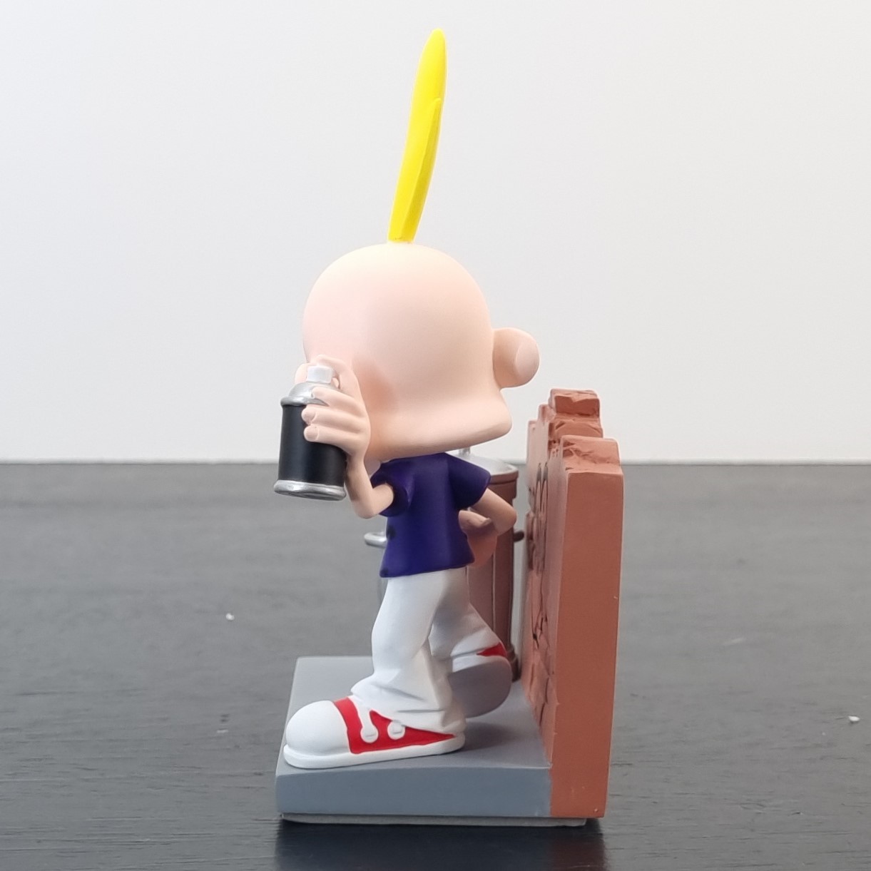 Demons et Merveilles has produced this vintage Titeuf figurine in the year 2001. This pre-loved figurine of Titeuf as tagger is about 14 centimeters high and comes with the original box. The condition of this vintage Titeuf collectible is excellent. Demons et Merveilles produced this collectible figurine in high quality Resin and in license of Zep.