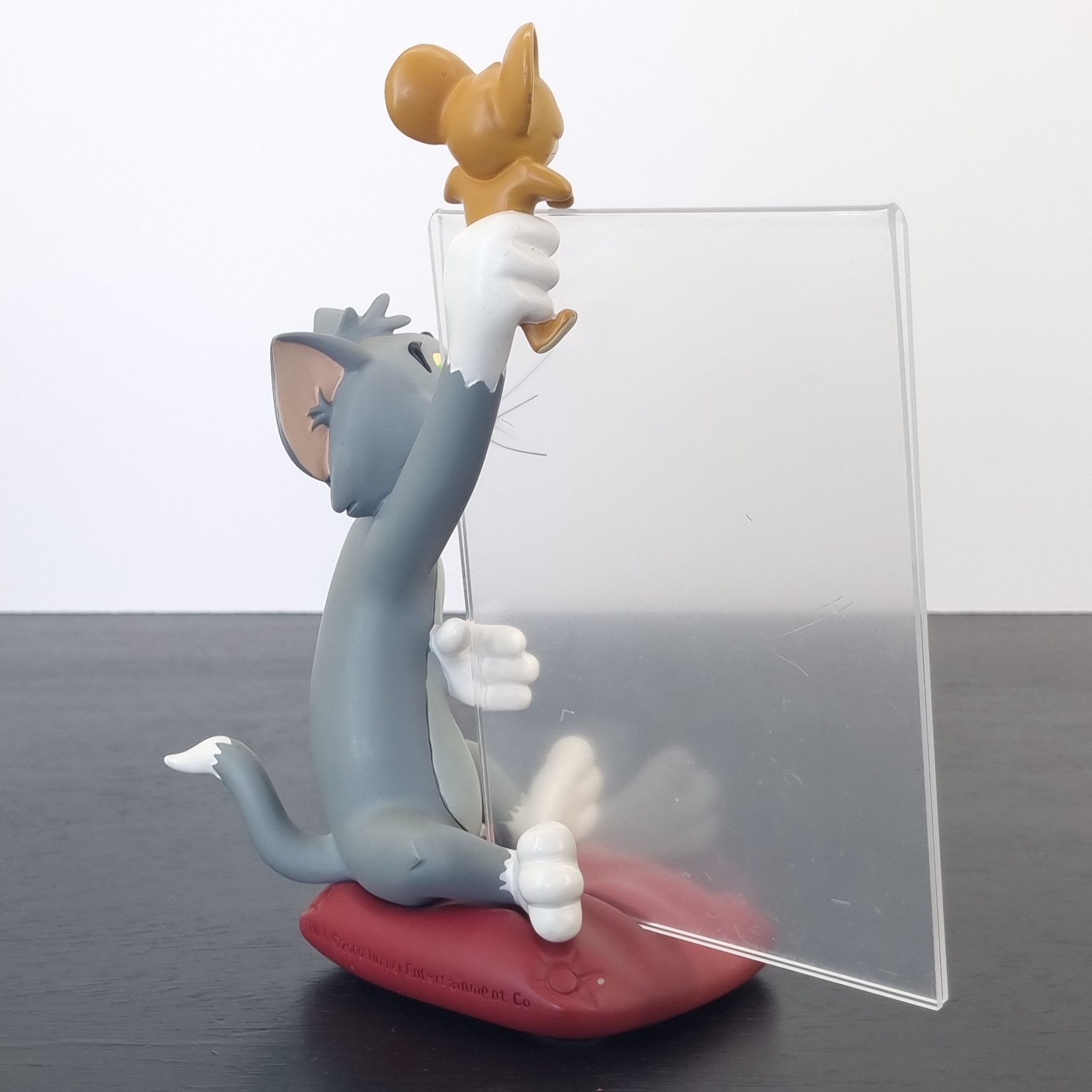 Demons et Merveilles has produced this vintage Tom Cat and Jerry Mouse photo frame in the year 2000. This pre-loved photo frame is about 16 centimeters high and comes without the original box. The condition of this Tom and Jerry photo frame is very good. Shows minimal wear. Demons et Merveilles produced this collectible photo frame in high quality Resin and in license of Hanna-Barbera.