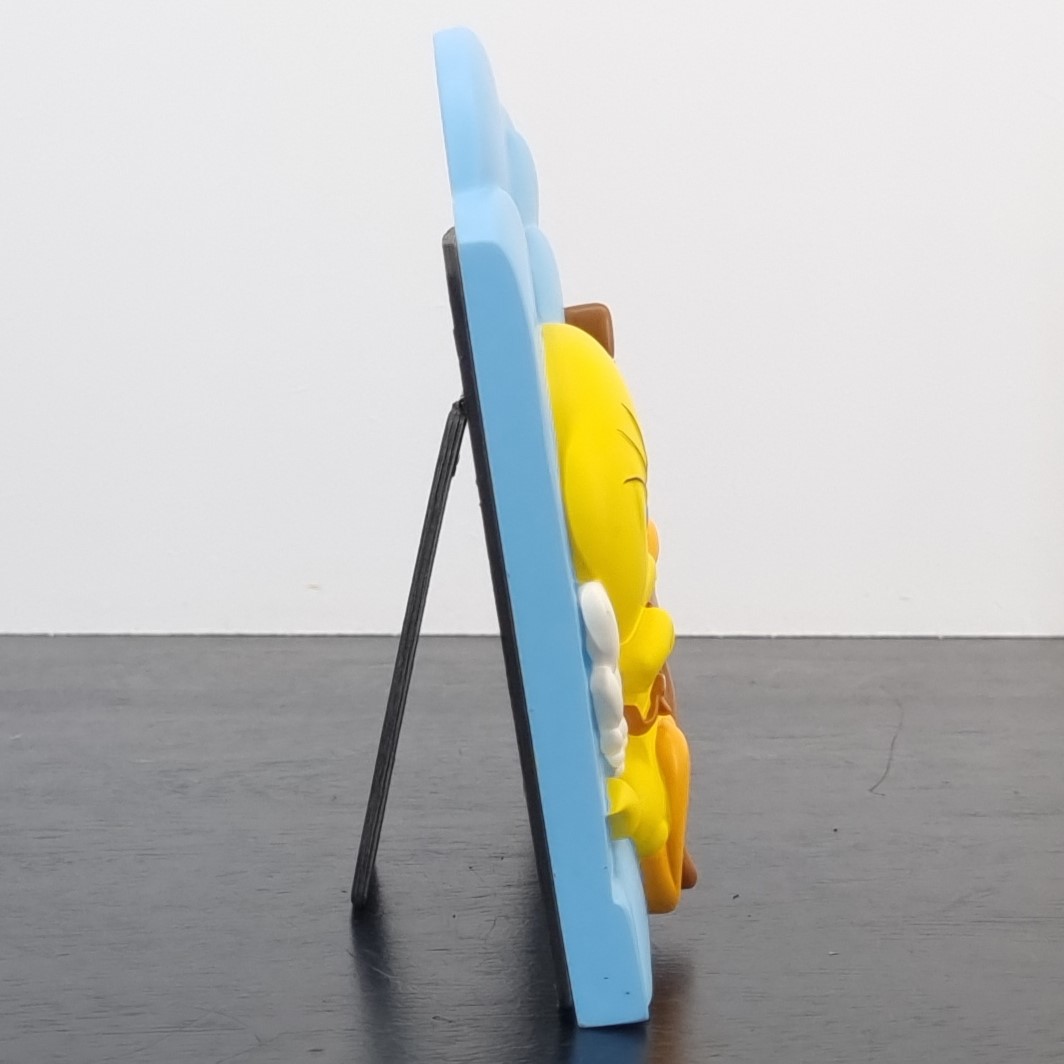 Demons et Merveilles has produced this vintage Tweety Bird blue Cupid photo frame in the year 2002. This pre-loved Looney Tunes photo frame is about 20 centimeters high and comes with the original box. The condition of this Tweety Bird collectible photo frame is excellent. Demons et Merveilles produced this vintage Tweety Bird photo frame in high quality Resin and in license of Warner Bros. Tweety Bird is a Looney Tunes character.