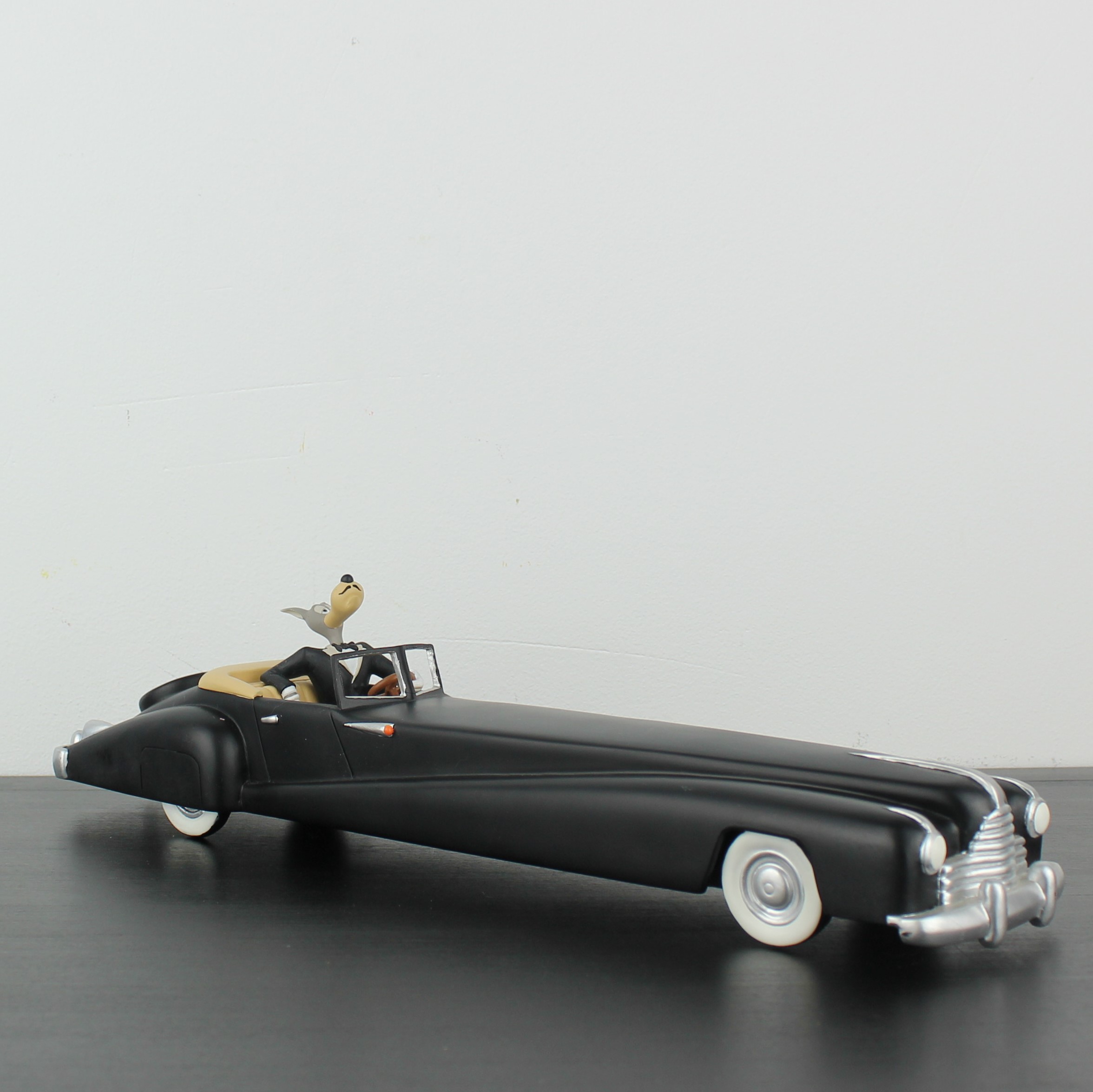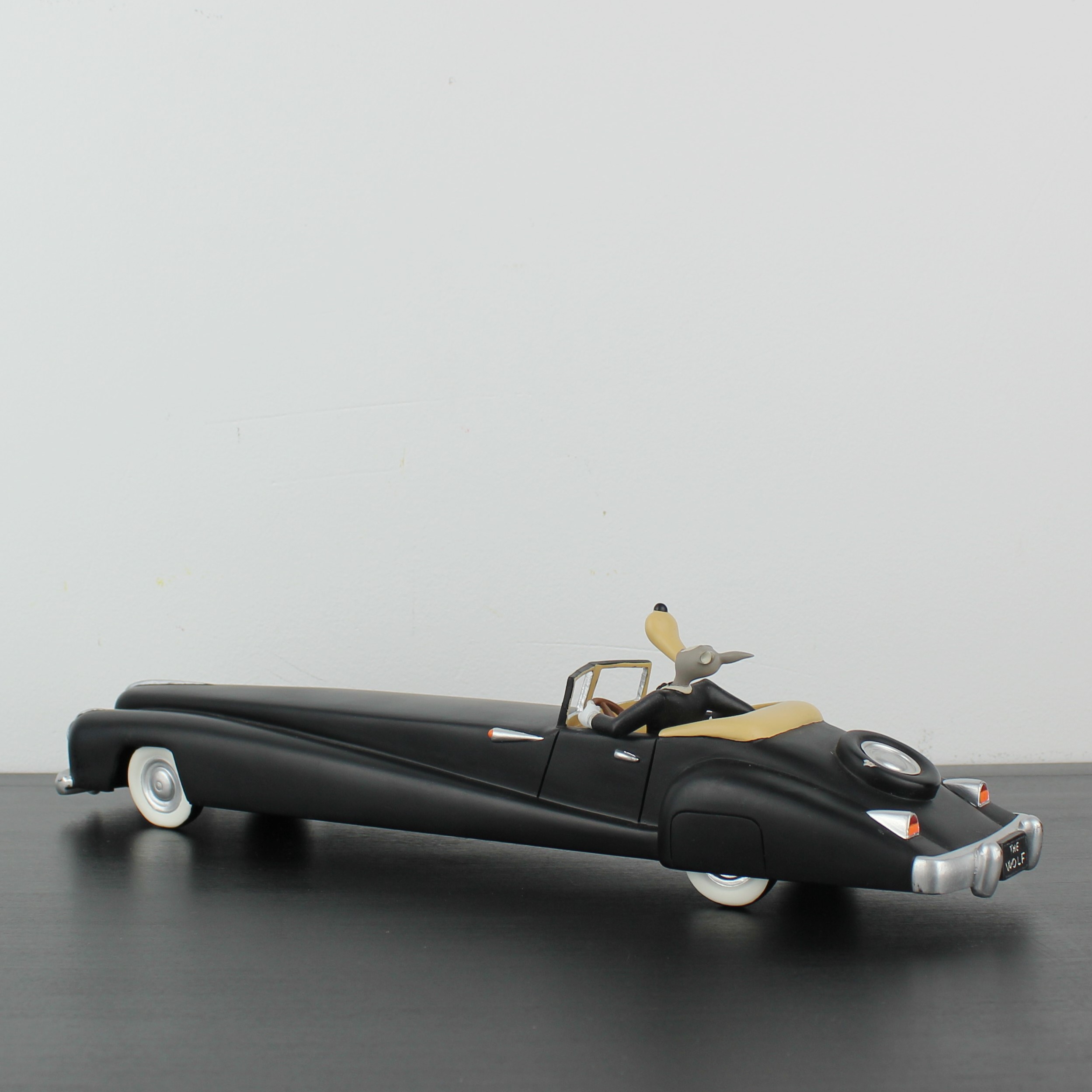 Demons et Merveilles has produced this vintage Wolf driving statue in the year 2002. This pre-loved Tex Avery statue is about 9 centimeters high and comes with the original box. The condition of this Wolf Tex Avery statue is excellent. Demons et Merveilles produced this collectible Wolf in his black limousine statue in high quality Resin and in license of Turner Entertainment. Wolf is a Tex Avery character.