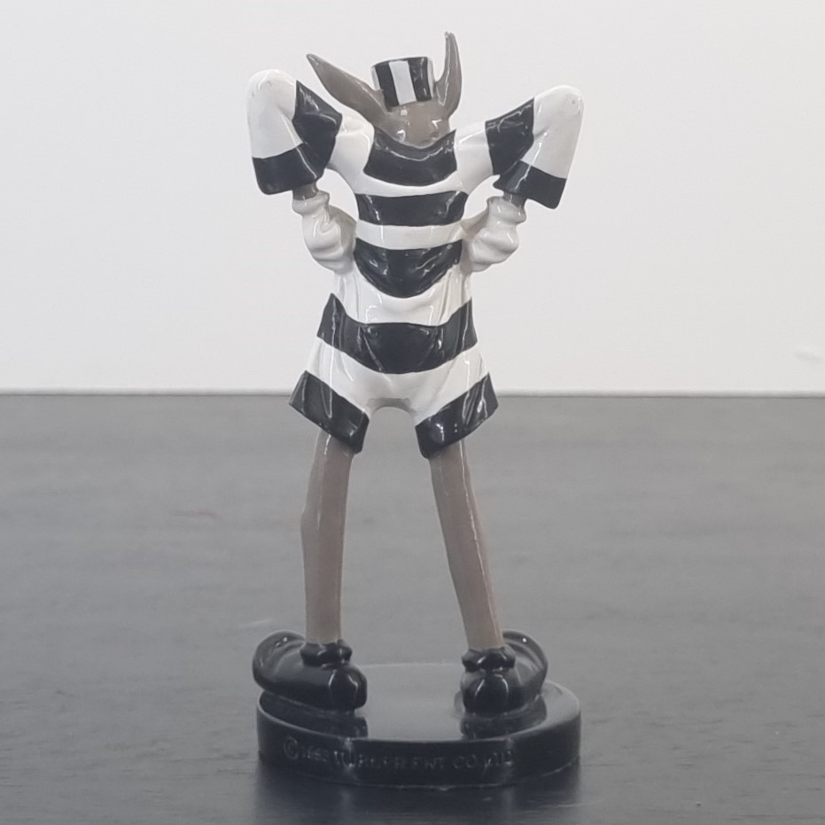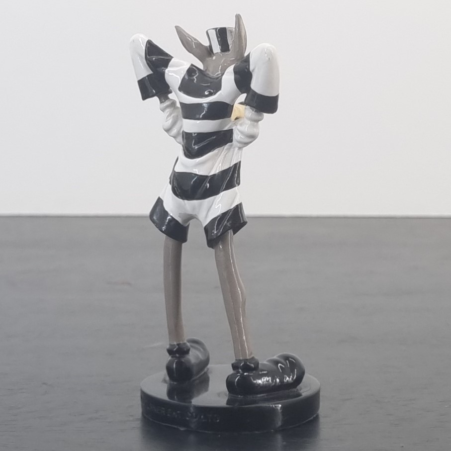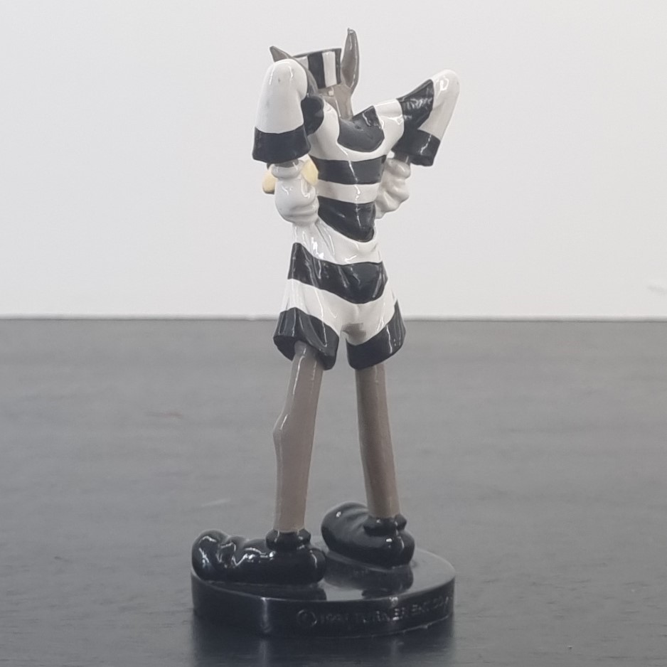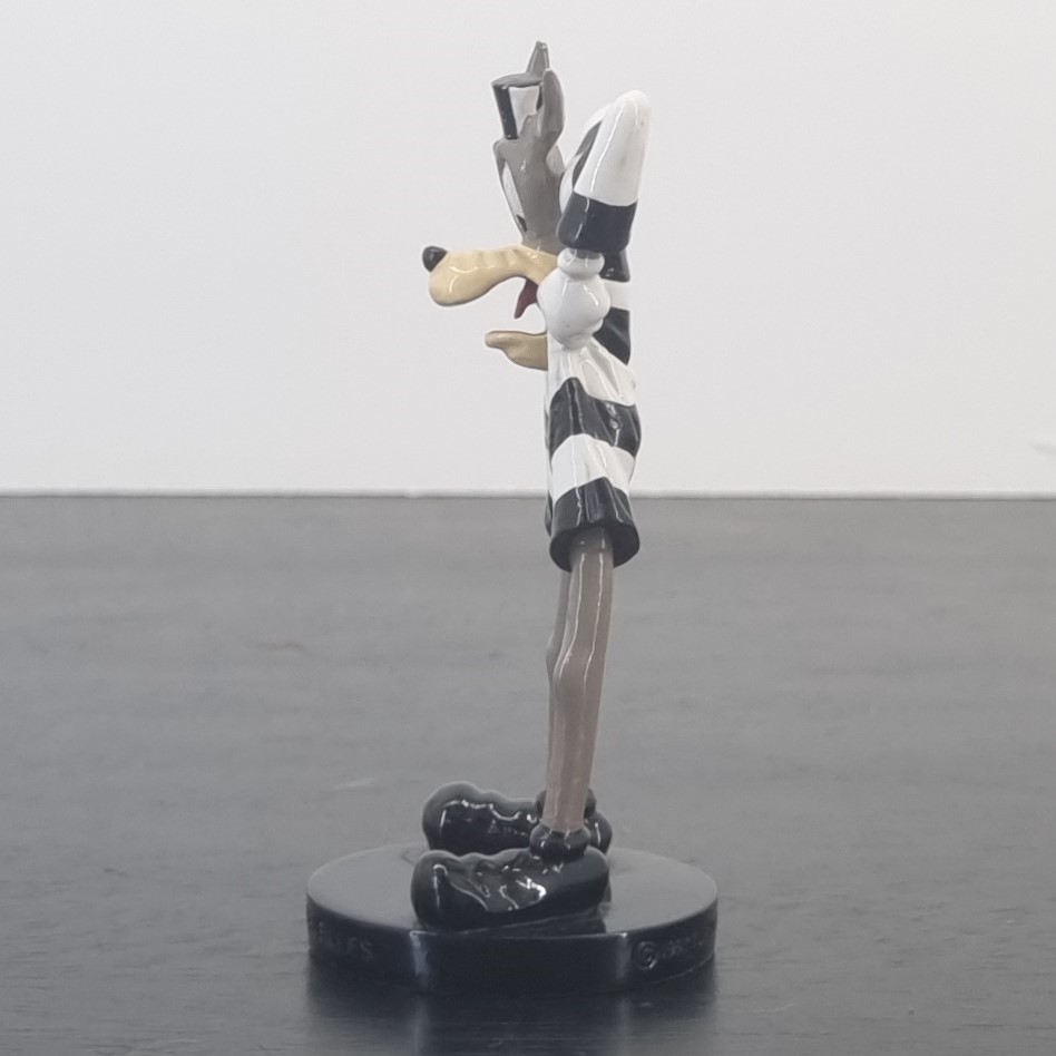 Amazing, vintage metal figurine of your favorite Tex Avery character; Wolf. Wolf is dressed in his prison clothes outfit. This figurine is based on the Tex Avery cartoon Nortwest Hounded Police.