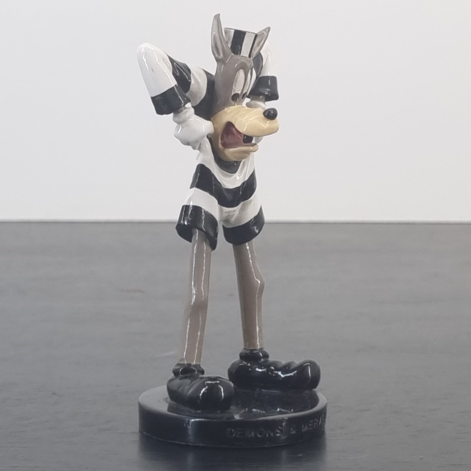 Demons et Merveilles has produced this vintage Wolf Tex Avery figurine in the year 1993. This pre-loved figurine is about 10 centimeters high and comes without the original box. The condition of this Wolf figurine is excellent. Demons et Merveilles produced this collectible figurine in high quality Metal and in license of Turner Entertainment. Wolf is a Tex Avery character.